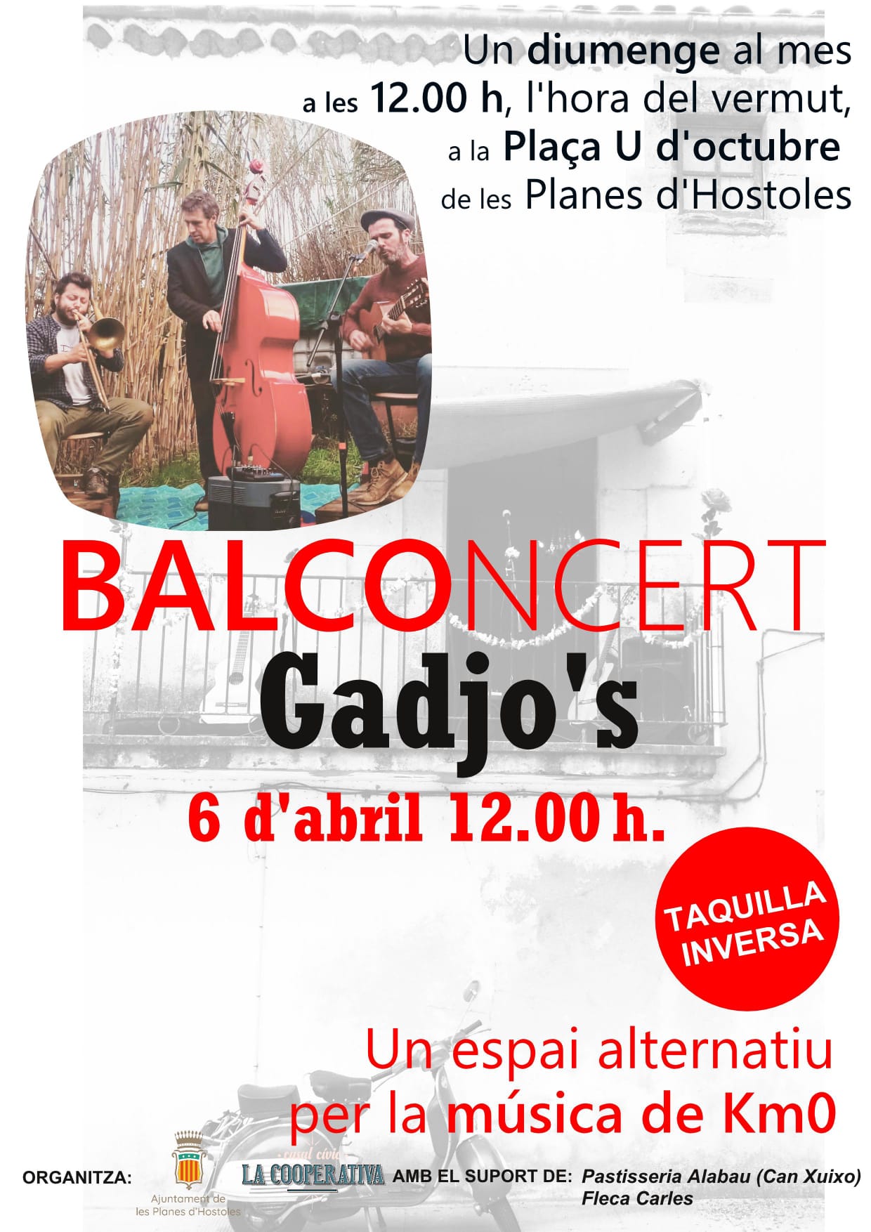Un diumenge al mes a les 12.00 h, l’hora del vermut, a la Plaça U d’octubre de les Planes d’Hostoles. Amb Gadjo’s